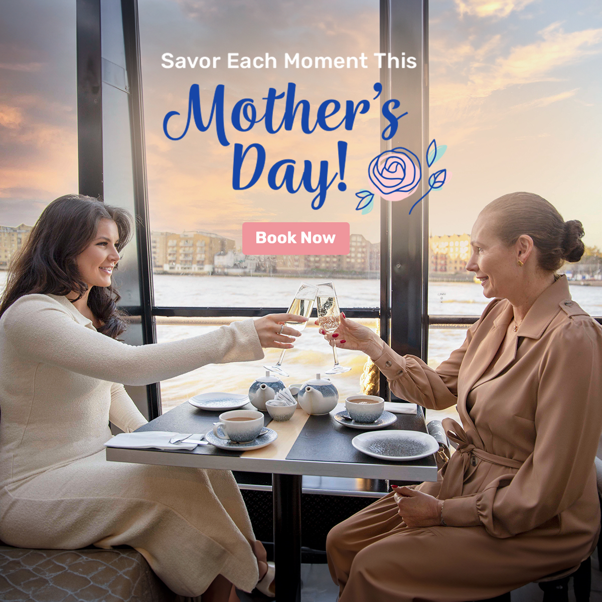 The duration of the Thames afternoon tea river cruise is an hour and a half.